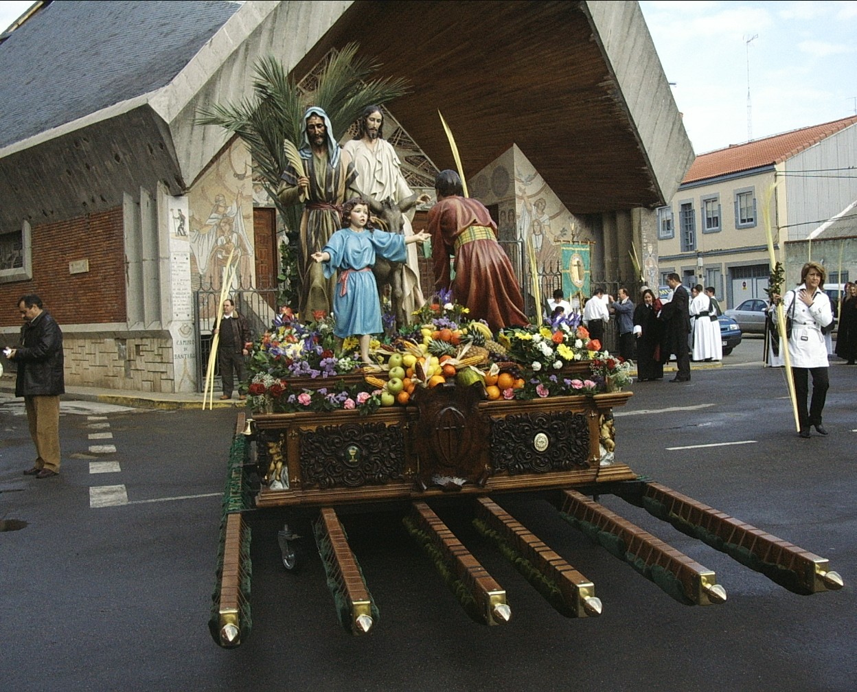 Los primeros años el Paso de la Borriquita sale con andas prestadas por la Junta Pro Fomento. Lo llevaban 12 braceros. En 1960 se decide hacer una carroza propia, y se hace para la procesión de ese mismo año. Se hizo en el taller de Emilio Mures, quien puso a disposición taller y personal. Feligreses y cofrades sufragaron con creces todos los costos. En acta figuran, además, diecisiete nombres destacados. Las cuatro ruedas de goma costaron 450 pesetas.