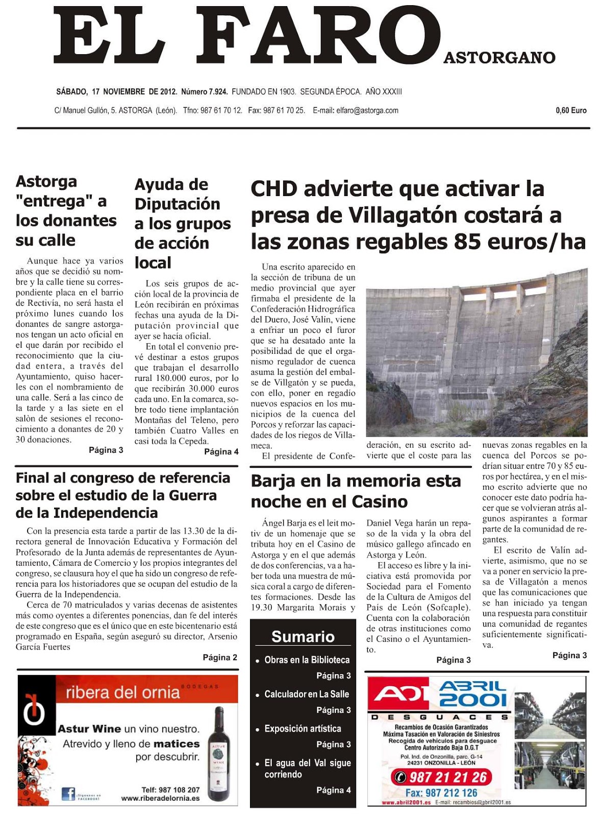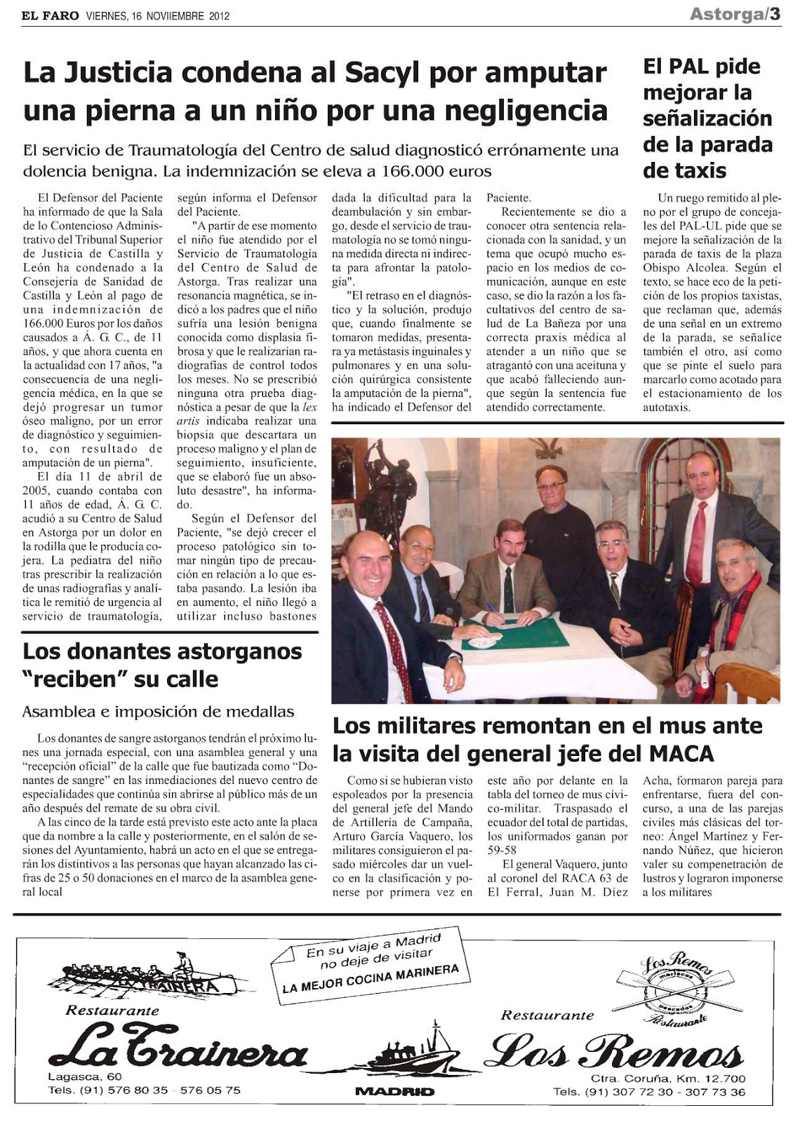 El Faro, 16 de noviembre de 2012. Los donantes astorganos "reciben" su calle. Asamblea e imposición de medallas.