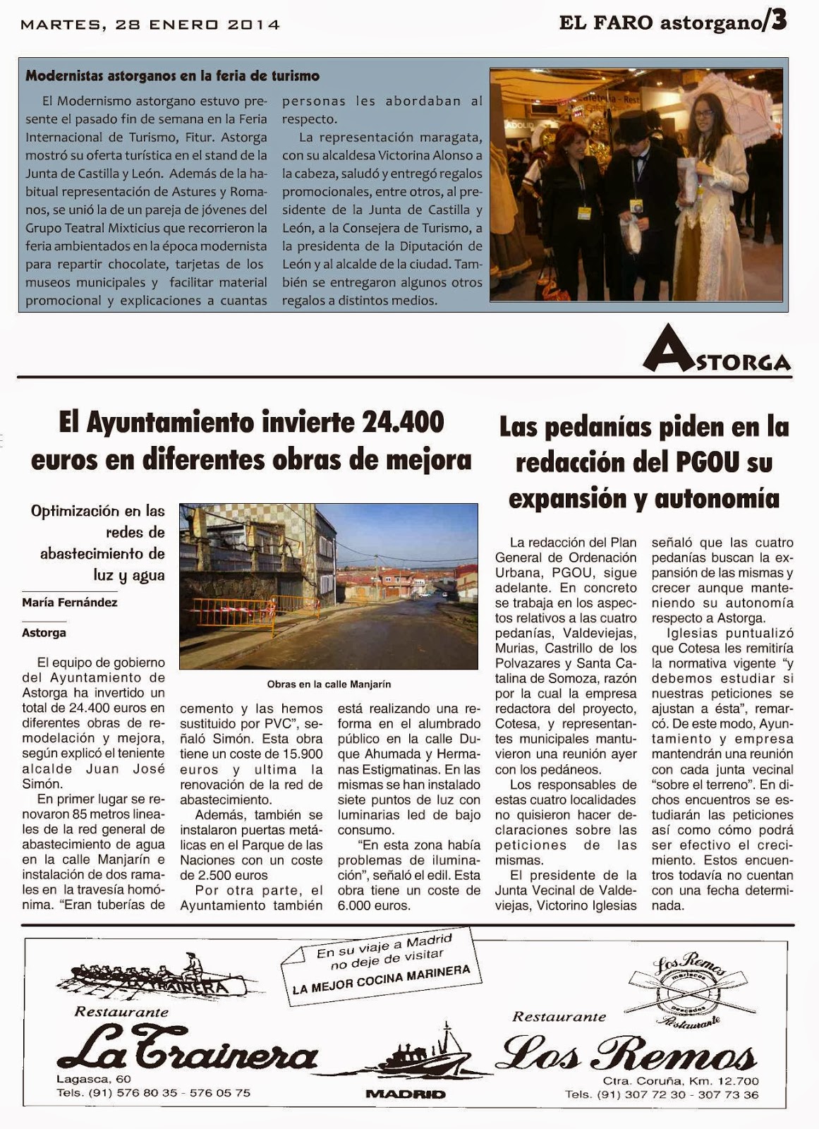 28.01.2014 El Faro. El Ayuntamiento invierte 24.400 euros en diferentes obras de mejora. Optimización en las redes de abastecimiento de luz y agua.