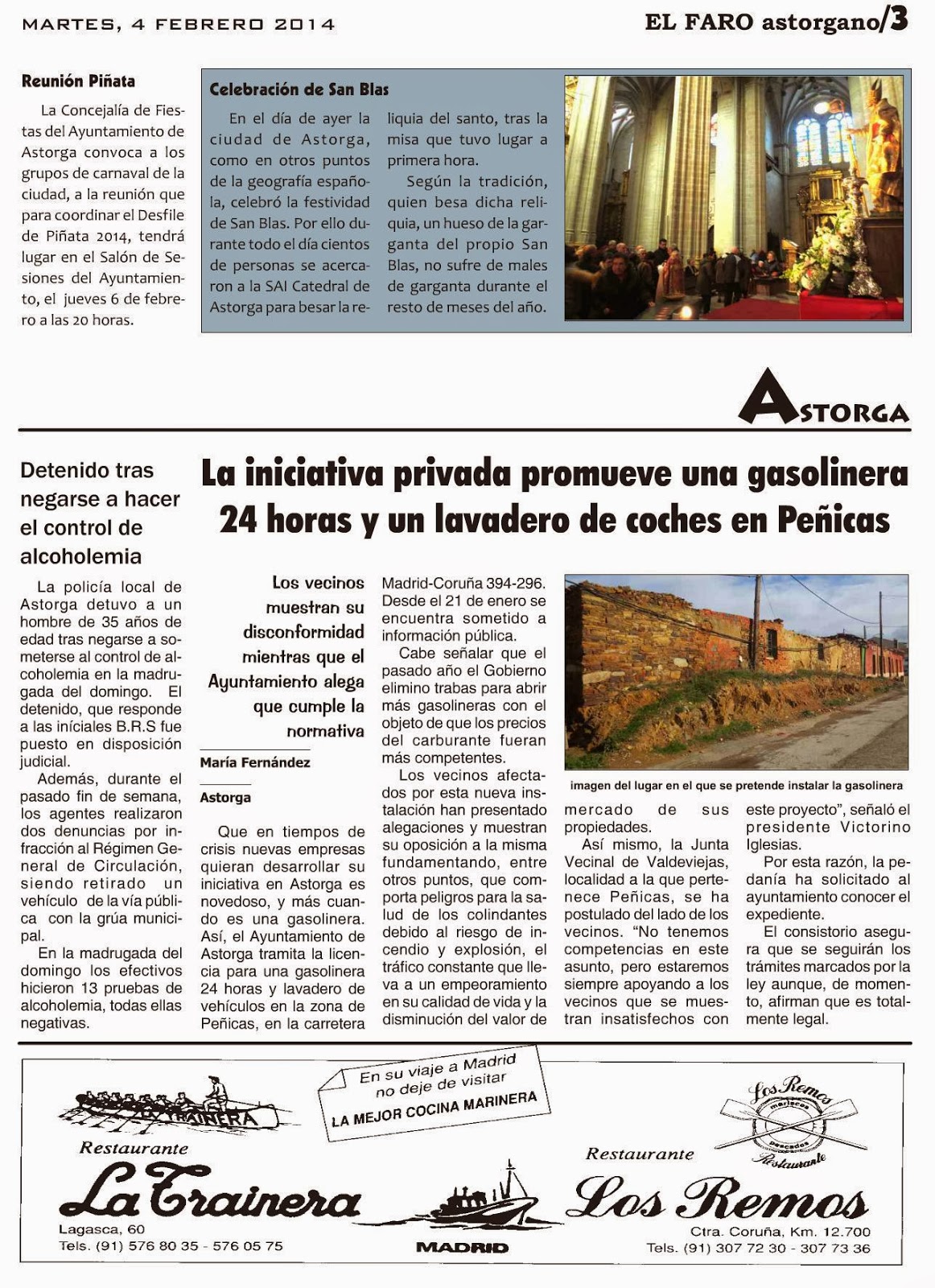4.02.2014 Diario de León. La pedanía apoya a los vecinos que rechazan una gasolinera en la zona. Simón afirma que se estudiarán las alegaciones presentadas.