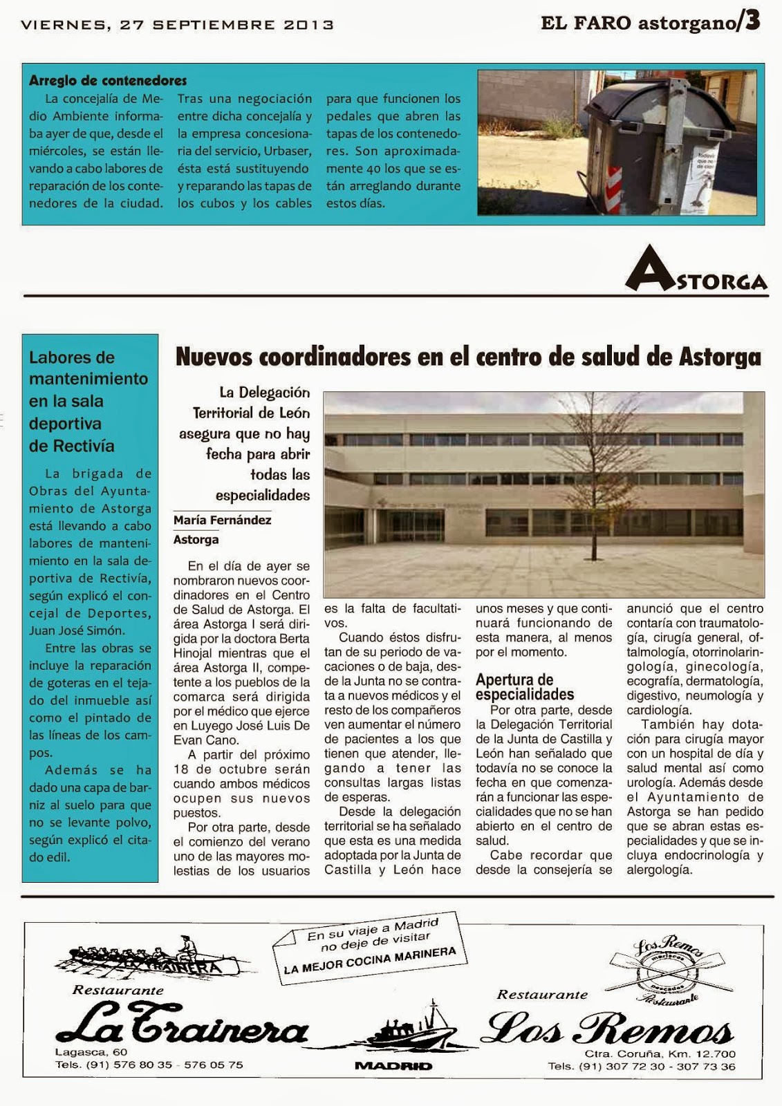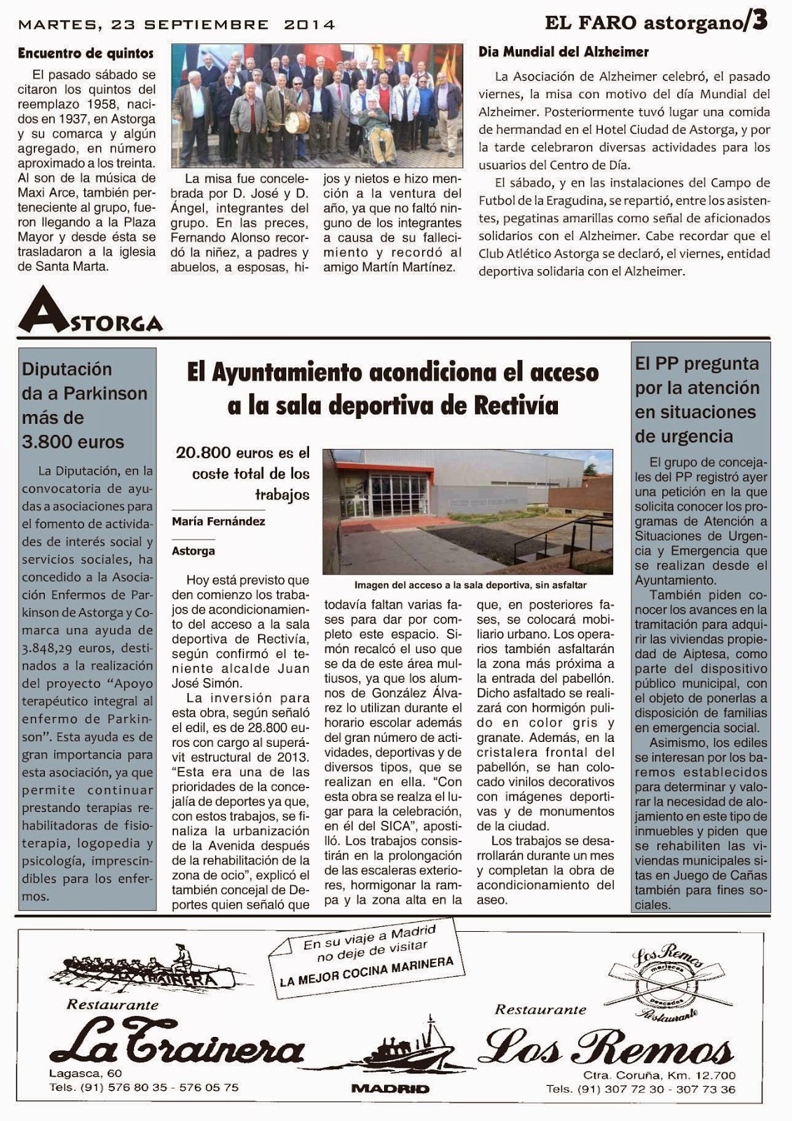 Diario de León, 23 de septiembre de 2014. El Ayuntamiento acomete el acceso al Pabellón de Rectivía con 28.800 euros.
