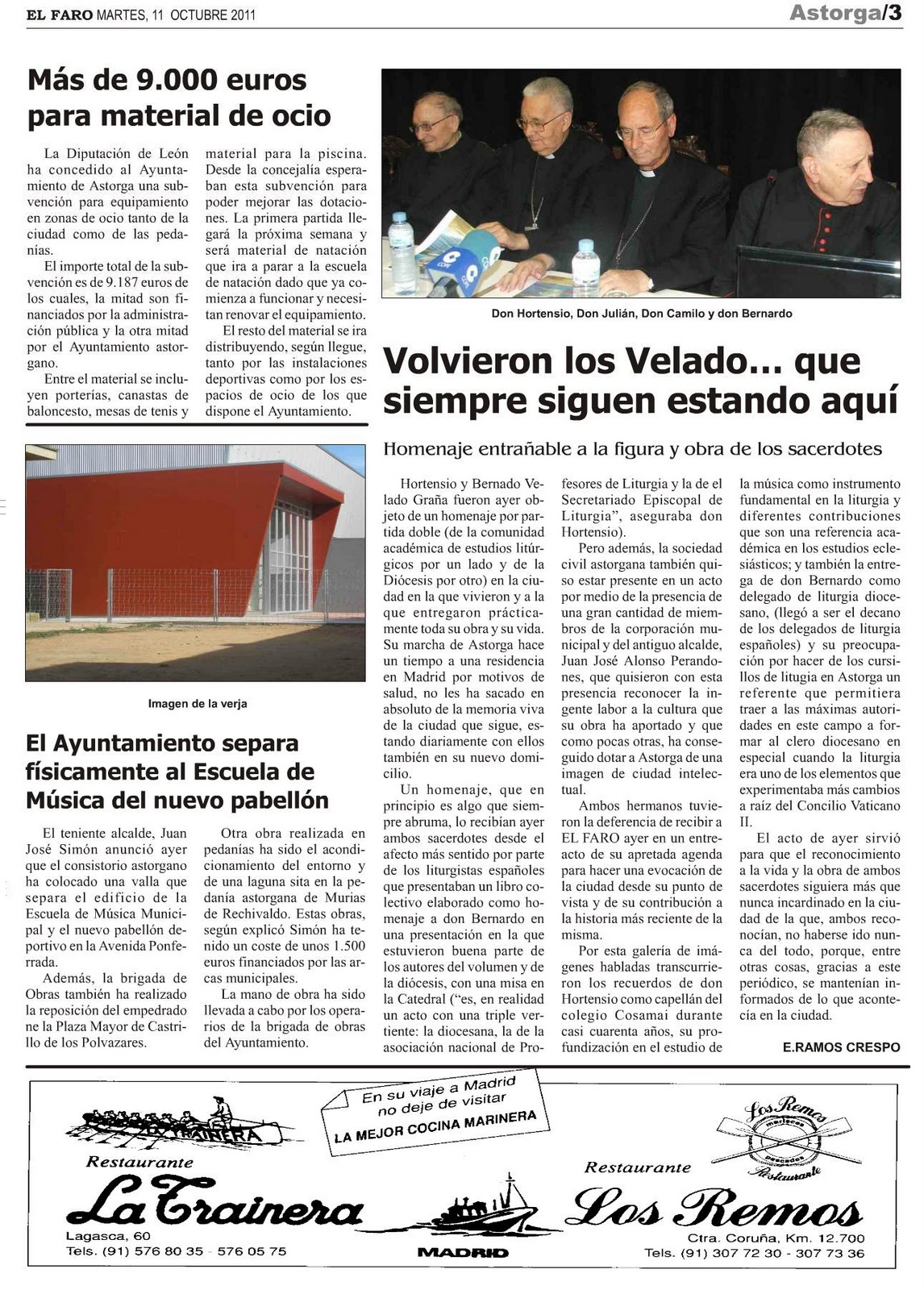 11.10.2011 El Faro. El Ayuntamiento separa físicamente la Escuela de Música del nuevo pabellón.