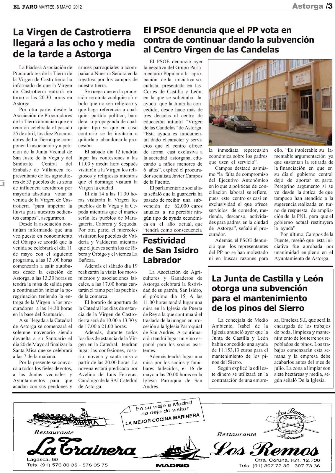 8.05.2012 El Faro Astorgano. Ayuda para los pinos del Sierro.