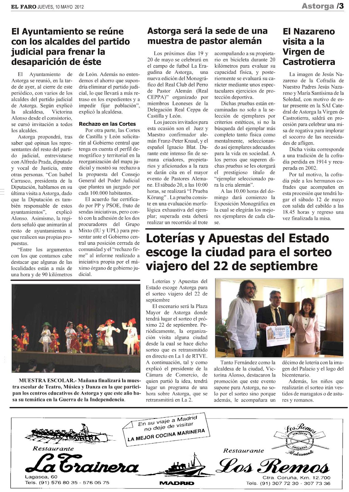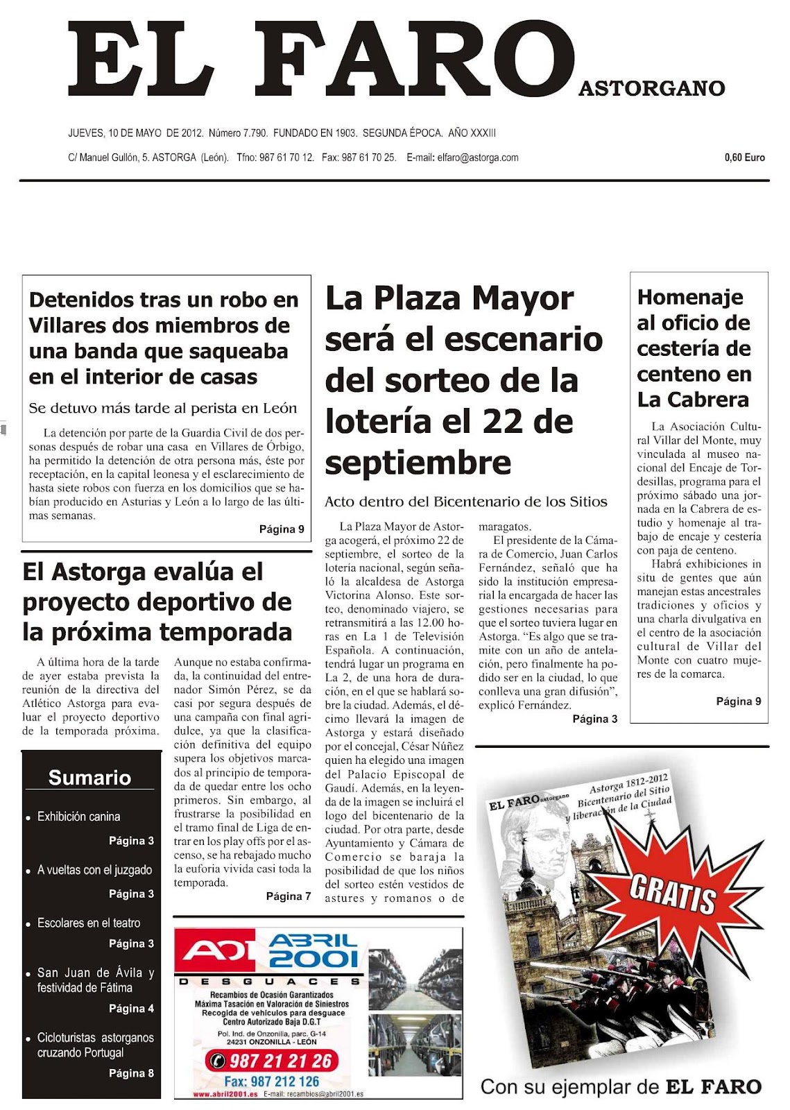 10.05.2012 El Faro Astorgano. La Plaza Mayor será el escenario del sorteo de la lotería el 22 de septiembre. Acto dentro del Bicentenario de los Sitios.