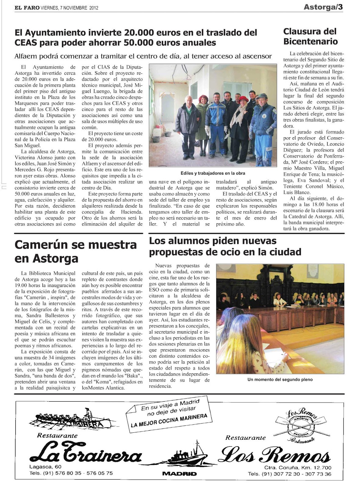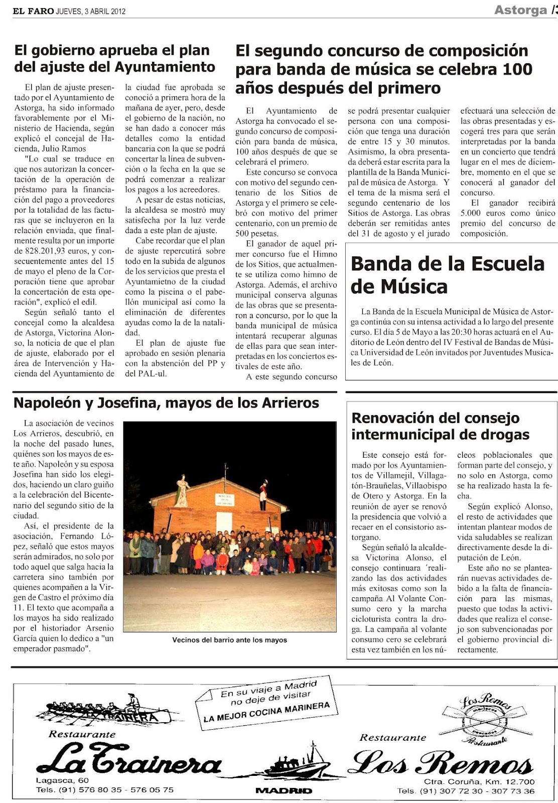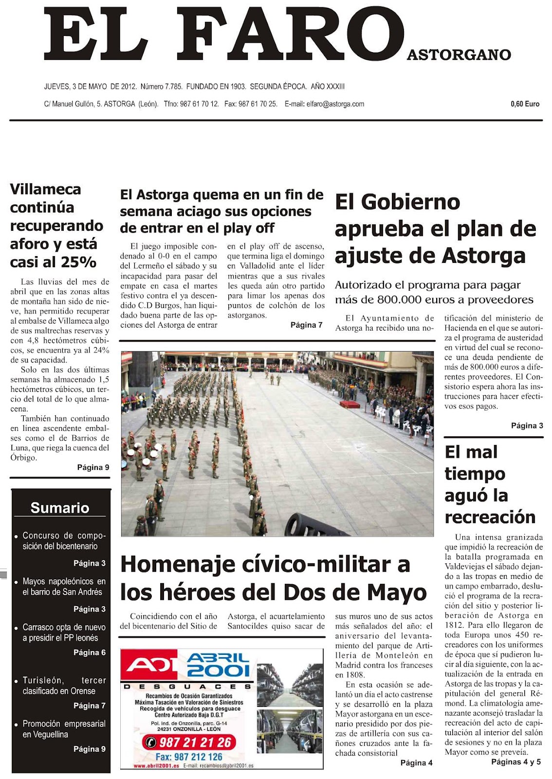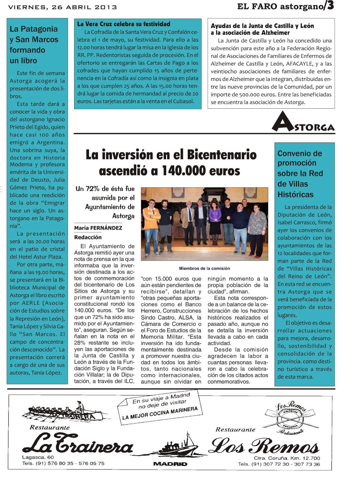 26.04.2013 El Faro Astorgano. La inversión en el Bicentenario ascendió a 140.000 euros. Un 72% de éste fue asumido por el Ayuntamiento de Astorga.