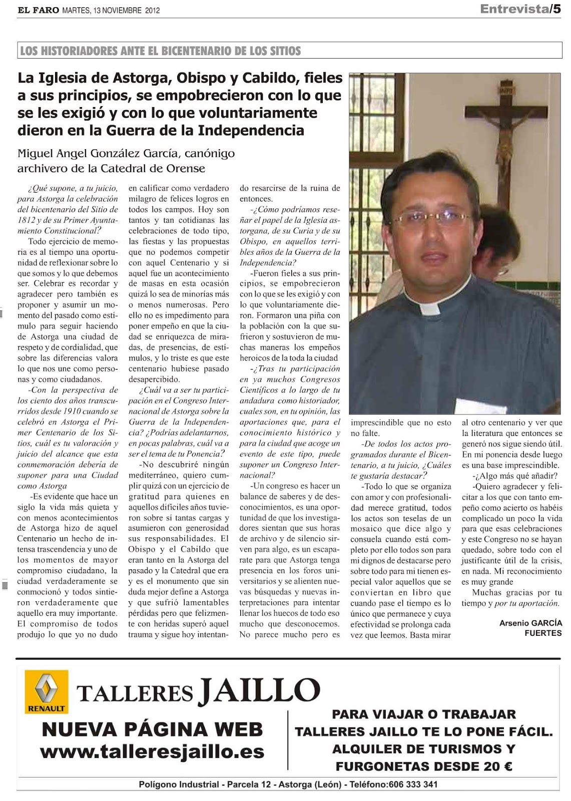 13.11.2012 El Faro Astorgano. Historiadores ante el bicentenario de los sitios. Arsenio G. Fuertes.