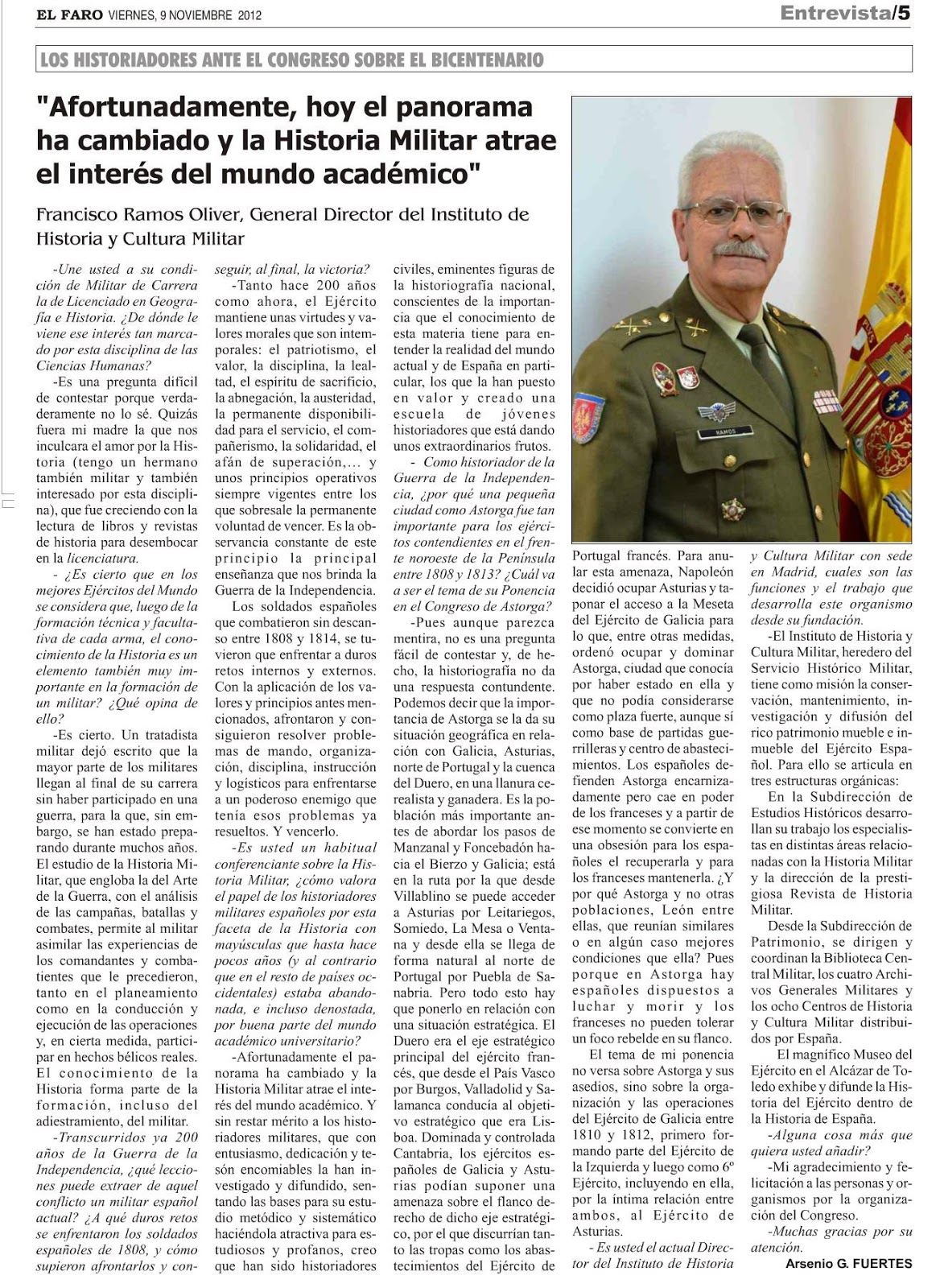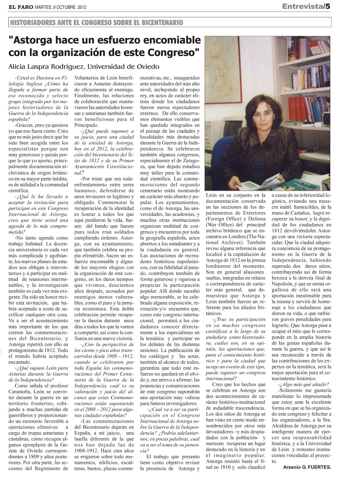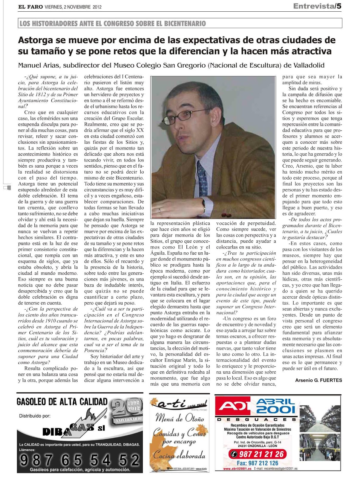 16.10.2012 El Faro Astorgano. Historiadores ante el congreso sobre el Bicentenario. Arsenio G. Fuertes.