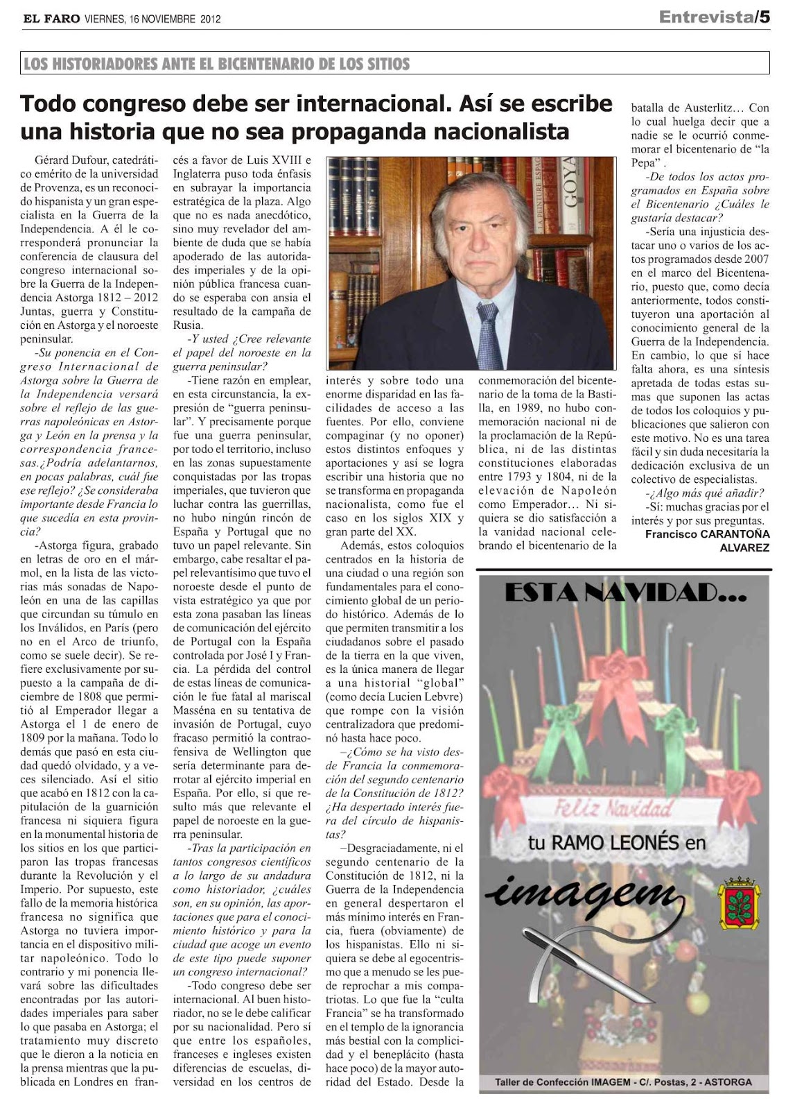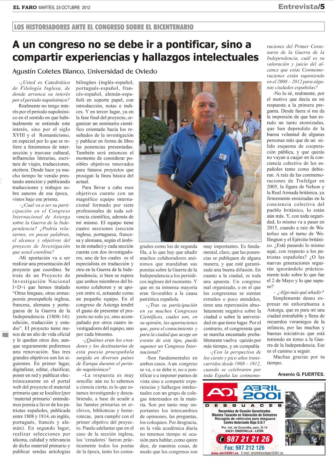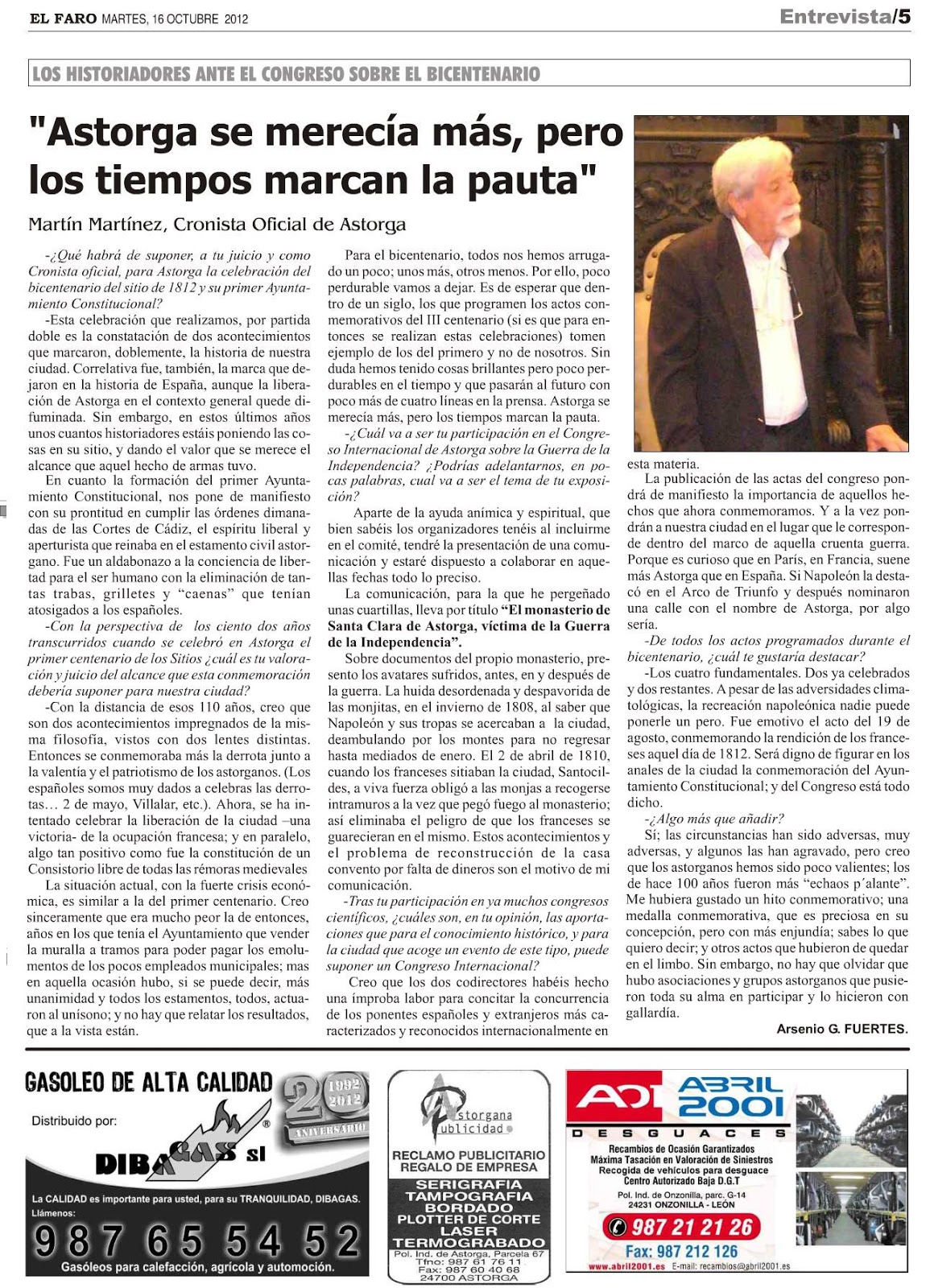 16.10.2012 El Faro Astorgano. Historiadores ante el congreso sobre el Bicentenario. Arsenio G. Fuertes.