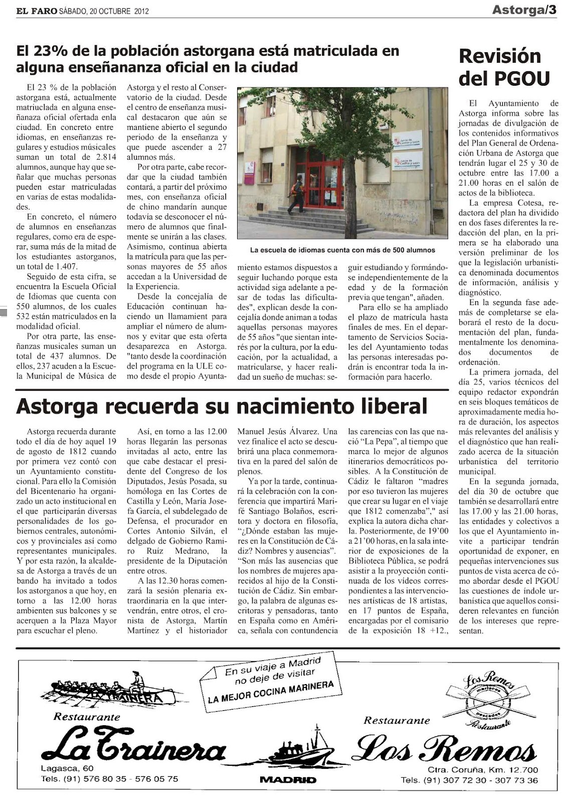 23.10.2012 El Faro Astorgano. Dos siglos de ciudadanos de Astorga.